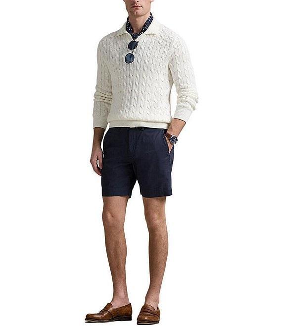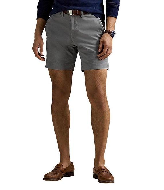 From Polo Ralph Lauren, these shorts feature: Stretch classic fit: Sits at the waist, eased through the leg 2 front-angled pockets Right hip coin pocket 2 back buttoned pockets Signature embroidered Pony above the back right pocket 7" inseam Stretch twill fabric Cotton/elastane Machine wash/tumble dry Imported.