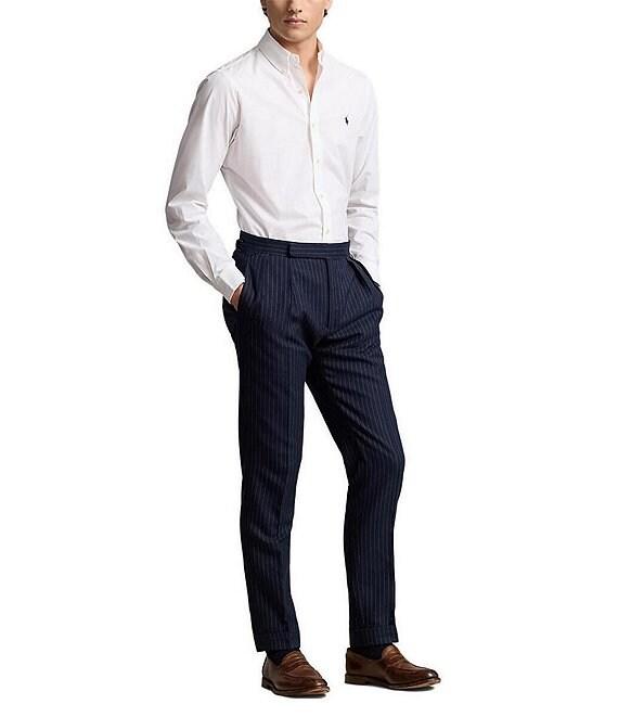 From Polo Ralph Lauren, this shirt features: Button-down point collar Long sleeves with buttoned barrel cuffs Button-front closure Embroidered "Pony" on the left side of chest Split back yoke with a box pleat ensures a comfortable fit and a greater range of motion Classic fit Stretch poplin fabric Cotton/elastane Machine wash/tumble dry Imported.