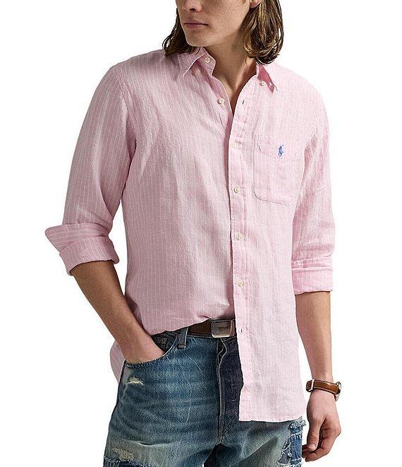 From Polo Ralph Lauren, this shirt features: Classic fit Button-down collar Long sleeves with buttoned barrel cuffs Button-front closure Left side patch pocket with "Polo Player" embroidery Split back yoke with a box pleat ensures a comfortable fit and a greater range of motion Ultra lightweight linen Machine wash/tumble dry Imported.