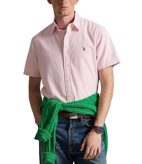 From Polo Ralph Lauren, this shirt features: Button-down collar Short sleeves Button-front closure Multicolored signature embroidered "Pony" on the left side of chest Split back yoke with a box pleat ensures a comfortable fit and a greater range of motion Classic fit Cotton Machine wash/tumble dry Imported.