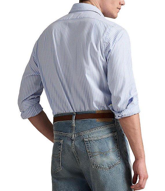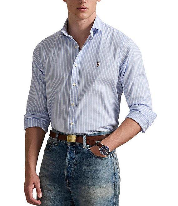 From Polo Ralph Lauren, this shirt features: Medium-spread collar Long sleeves with buttoned barrel cuffs Button-front closure Signature embroidered "Pony" on the left side of chest Split pleated back yoke ensures smooth, contoured shoulders Stretch oxford fabric Cotton/elastane Machine wash/tumble dry Imported.