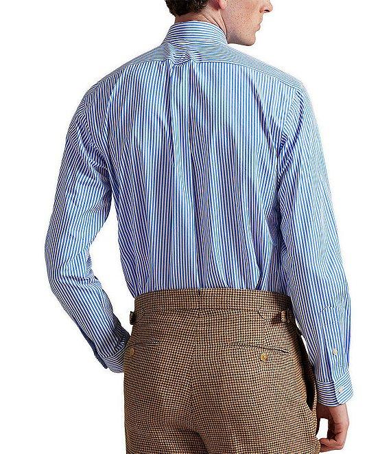 From Polo Ralph Lauren, this shirt features: Button-down collar Long sleeves with buttoned barrel cuffs Button-front closure Signature embroidered "Pony" on the left side of chest Split back yoke with a box pleat ensures a comfortable fit and a greater range of motion Stretch poplin fabric Cotton/elastane Machine wash/tumble dry Imported.