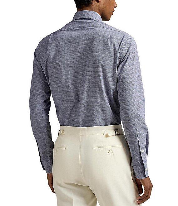 From Polo Ralph Lauren, this shirt features: Medium-spread collar Long sleeves with buttoned barrel cuffs Button-front closure Signature embroidered Pony on the left side of the chest Split pleated back yoke ensures smooth, contoured shoulders Breathable, stretch poplin fabric Cotton/elastane Machine wash/tumble dry Imported.