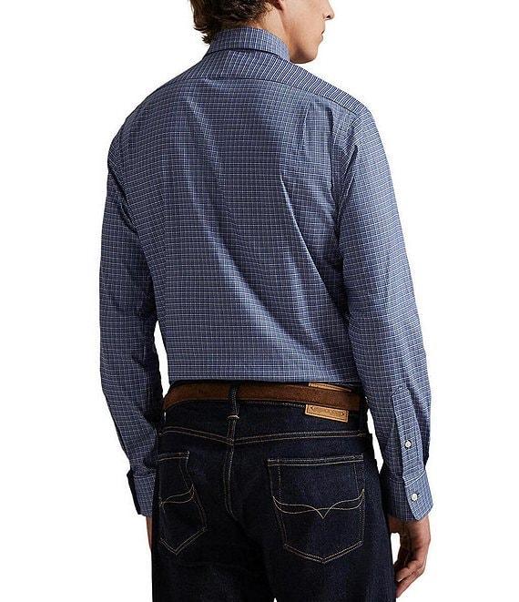 From Polo Ralph Lauren, this shirt features: Classic fit Button-down collar Long sleeves with buttoned barrel cuffs Button-front closure Signature embroidered "Pony" on the left side of chest Split back yoke with a box pleat ensures a comfortable fit and a greater range of motion Moisture wicking Stretch twill fabric Cotton/nylon/lyocell/elastane Machine wash/tumble dry Imported.