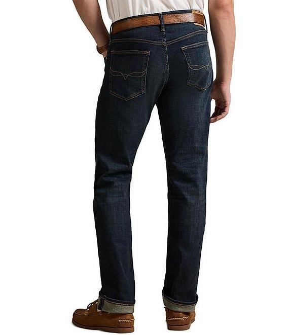 From Polo Ralph Lauren, these jeans feature: Belt loops Zip fly with a signature buttoned closure 5-pocket jeans with copper-tone signature metal rivets Woven "Polo" label on the coin pocket Polo Ralph Lauren" leather patch at the back right waist Cotton/elastane Machine wash/tumble dry Imported.
