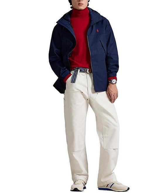 From Polo Ralph Lauren, this windbreaker features: Drawstring hood with a built-in brim Long sleeves Adjustable hook-and-loop tabs at the cuffs Two-way full-zip front with a flap at the top that prevents chafing Signature embroidered Pony on the left side of chest 2 front zipped pockets Interior left chest pocket Drawstring hem Fully lined Upper body is lined with mesh This jacket shields you from the rain thanks to its lightweight, water-resistant fabric and drawstring hood Approx. 29.25" body length, 36.5" sleeve length Recycled polyester Machine wash/tumble dry low Imported.