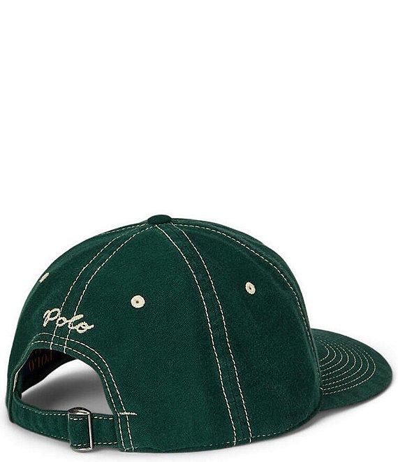 From Polo Ralph Lauren, this cap features: Felt “P” patch at the front Chain-stitched “Polo” embroidery and an adjustable buckled strap at the back Seamed bill Six-panel construction Ventilating embroidered eyelets Lined at the front panels Sweatband at the interior 23.25" inner circumference Cotton Spot clean Imported.