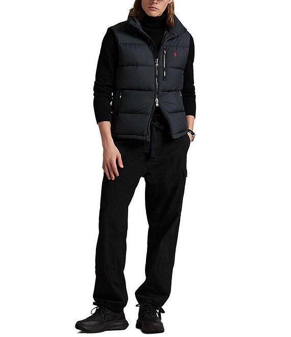 From Polo Ralph Lauren, this vest features: Water-repellent ripstop 650-fill power down Mock neckline Sleeveless Two-way full-zip front with a flap at the top that prevents chafing Zipper pulls custom-developed with an "RL" logo Signature embroidered "Pony" on the left side of chest Left chest zipped pocket 2 front waist zipped pockets Interior right chest pocket Drawstring hem Fully lined and filled Interior drawstring hem Shell of recycled polyester; lining of nylon; fill of duck down/duck feathers Machine wash/tumble dry Imported.