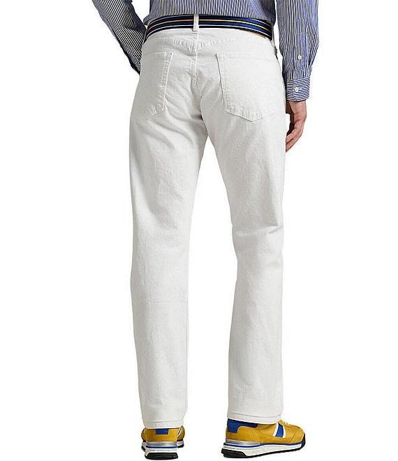 From Polo Ralph Lauren, these jeans feature: belt loops zip fly with a signature buttoned closure five-pocket styling with copper-tone signature metal rivets woven "Polo" label at the coin pocket Polo Ralph Lauren" leather patch at the back right waist cotton/elastane machine wash Imported.
