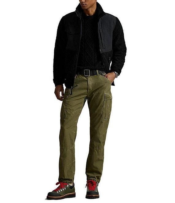 From Polo Ralph Lauren, this jacket features: Signature embroidered Pony at the left chest Mockneck with ripstop piecing Full-zip front with a storm guard Long sleeves with ripstop elbow patches Stretch binding at the cuffs Ripstop paneling at the upper front and back yoke Left chest zipped pocket Right chest snapped pocket Rubber snap custom-developed with a P.R.L. & Co. Ralph Lauren Workwear N.Y.C. logo Two front waist zipped pockets Stretch binding at the hem Mesh interior at the lower front body Shell: Polyester/acrylic Interior and front panel lining: Polyester Woven trim: Nylon Machine wash Imported.