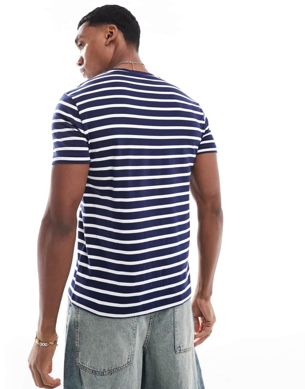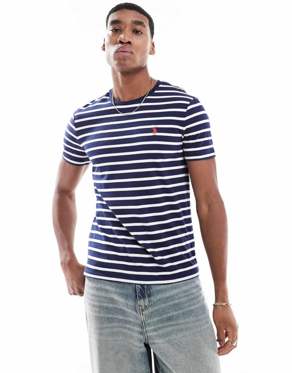 Polo Ralph Lauren icon logo stripe t-shirt custom fit in navy/white
