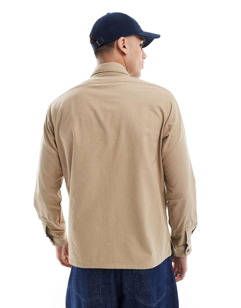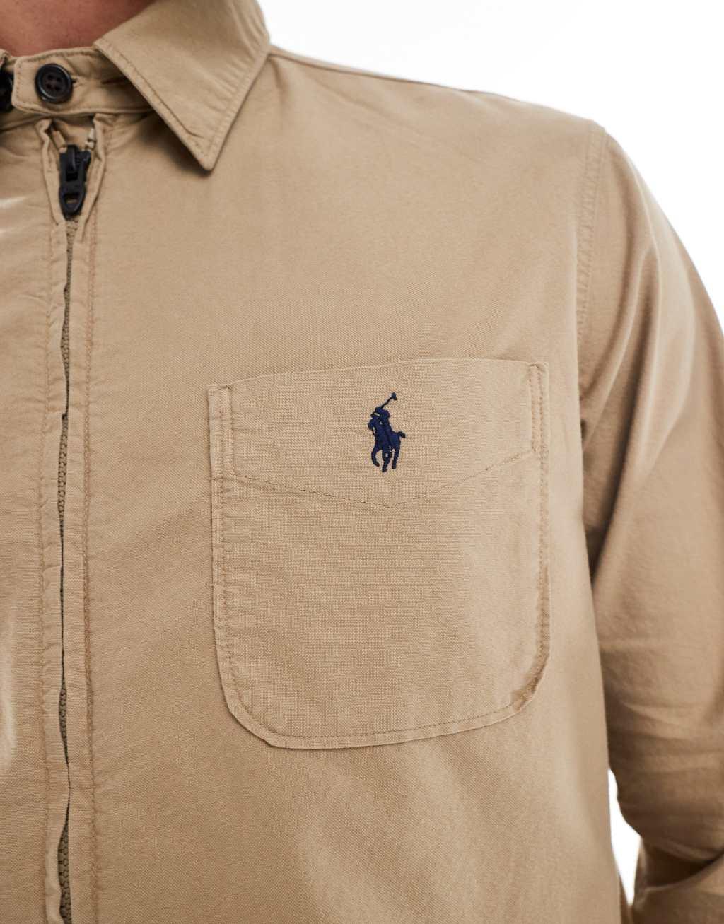 Polo Ralph Lauren icon logo zip front garment dyed oxford overshirt in tan