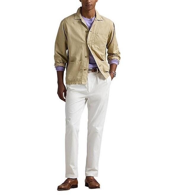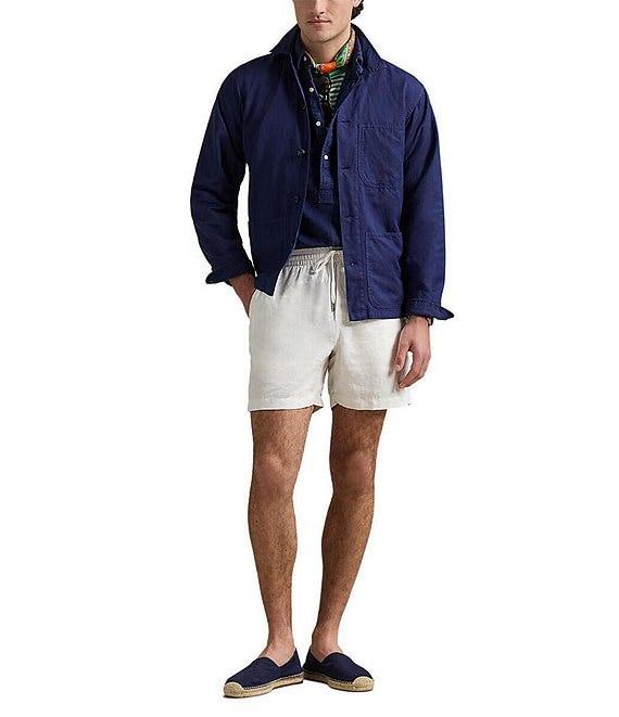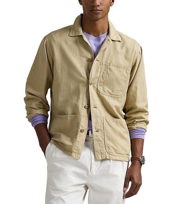 From Polo Ralph Lauren, this shirt features: Straight collar Long sleeves with buttoned cuffs Button-front closure with Corozo buttons Left chest patch pocket Two front waist patch pockets Signature embroidered pony at the left waist pocket Lightweight linen/cotton Machine wash/tumble dry Imported.