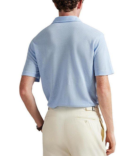 From Polo Ralph Lauren, this polo shirt features: Polo collar Short sleeves 4-button placket Genuine mother-of-pearl buttons custom-developed with a “Ralph Lauren” logo Left side patch pocket Even vented hem Signature embroidered "Pony" on the right hem Pullover construction Standard fit Piqué linen Machine wash/tumble dry Imported.