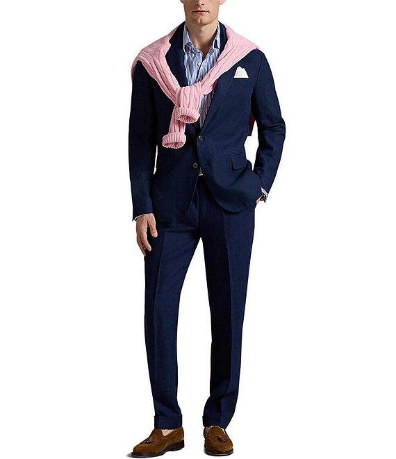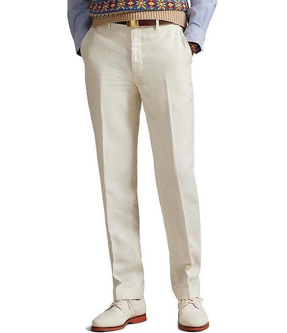 From Polo Ralph Lauren, these pants feature: Zip fly with a hook-and-bar closure Belt loops Curtain waistband 2 front angled pockets Right hip coin pocket 2 back buttoned pockets Lined to the knees Shell: Linen Lining: Polyester/viscose Machine wash/line dry Imported.