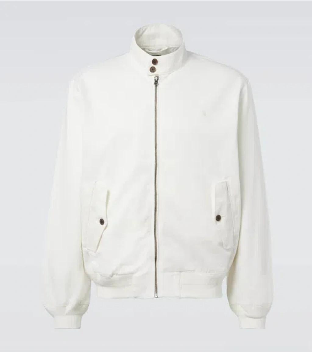 Shop Polo Ralph Lauren Logo-embroidered Cotton-twill Bomber Jacket In White from 800+ stores, starting at €262. Info & Care Polo Ralph Lauren twill jacket Button-fastening funnel neck, embroidered designer crest, button-fastening front flap pockets, ribbed trims Zip fastening through front 100%;cotton Machine wash Size & Fit Length shoulder to hem: 26 inches/ 66cm Midweight Boxy fit Model is 6'1"/ 185cm, chest size 36 inches and wears a size medium