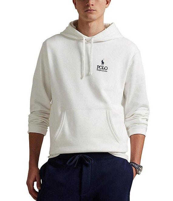 From Polo Ralph Lauren, this hoodie features: Drawstring hood Long sleeves with ribbed cuffs Signature "Pony" and "Polo Ralph Lauren" embroidered on the left side of chest Kangaroo pocket Ribbed hem Pullover construction Fleece fabric Cotton/polyester Machine wash/tumble dry Imported.