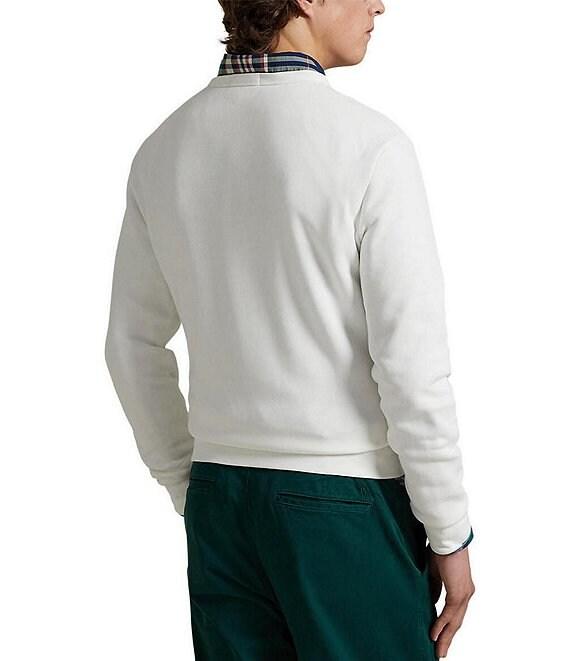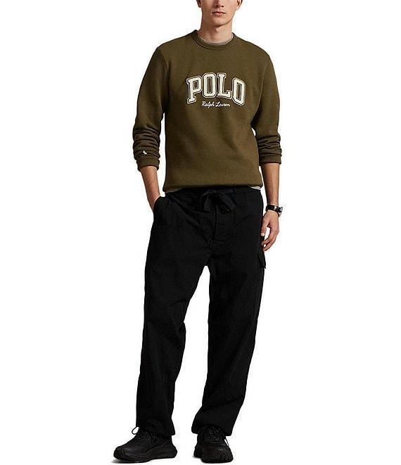 From Polo Ralph Lauren, this sweatshirt features: Crew neck Long sleeves with ribbed cuffs Chenille appliqués spelling out "Polo", and "Ralph Lauren" embroidery on the center front Signature embroidered "Pony" above the right cuff Ribbed hem Pullover construction Cotton/polyester/acrylic/wool Machine wash/tumble dry Imported.
