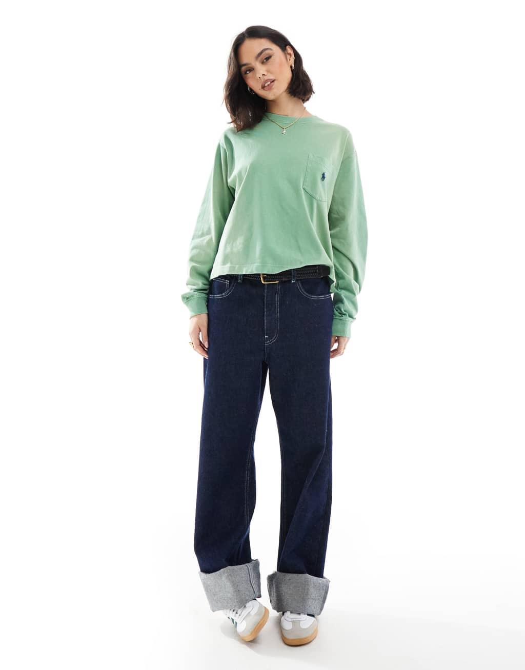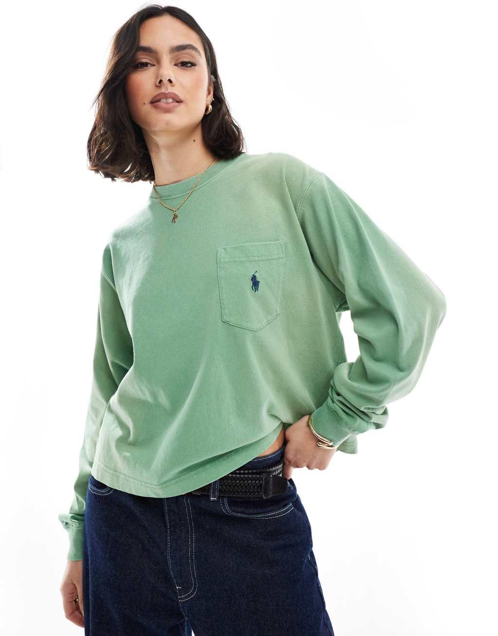Polo Ralph Lauren loose fit long sleeve top with logo in washed green