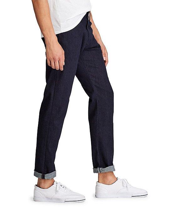 From Polo Ralph Lauren, these jeans feature: belt loops button fly with a signature buttoned closure 5-pocket styling with signature metal rivets "Polo" label at the coin pocket leather "Polo Ralph Lauren" patch at the back right waist stretch fabric cotton/elastane machine wash/tumble dry Imported