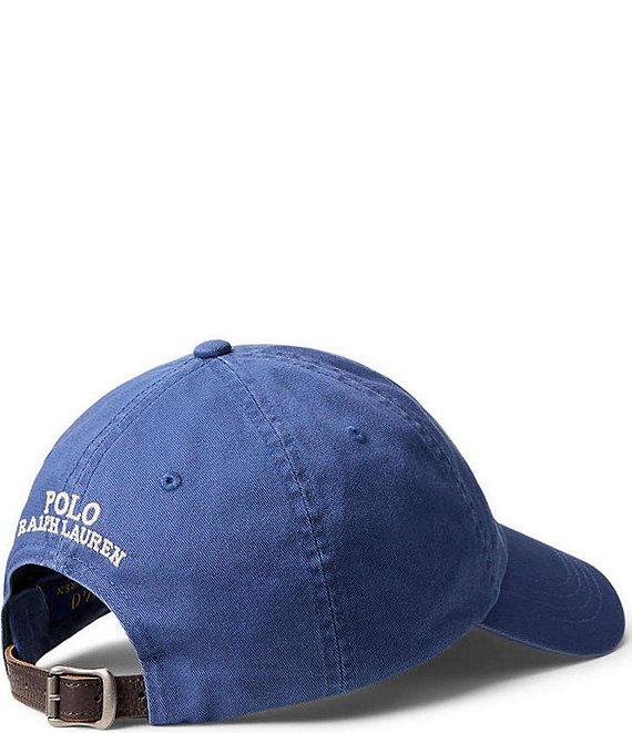 From Polo Ralph Lauren, this cap features: "Polo Bear" and "Polo" embroidered on the front Seamed bill 6-panel construction Ventilating embroidered eyelets Sweatband at the interior "Polo Ralph Lauren" embroidery and a buckled leather strap at the back 23.25" inner circumference Cotton Spot clean Imported.