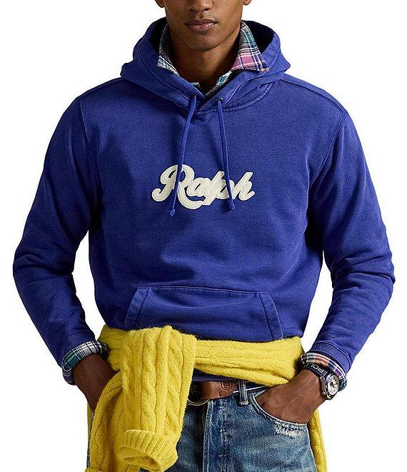 From Polo Ralph Lauren, this hoodie features: Drawstring hood Long sleeves with ribbed cuffs Felt patch with chain-stitched "Ralph" embroidery on the chest Kangaroo pocket Ribbed hem Pullover construction Fleece fabric Cotton/polyester Machine wash/tumble dry Imported.