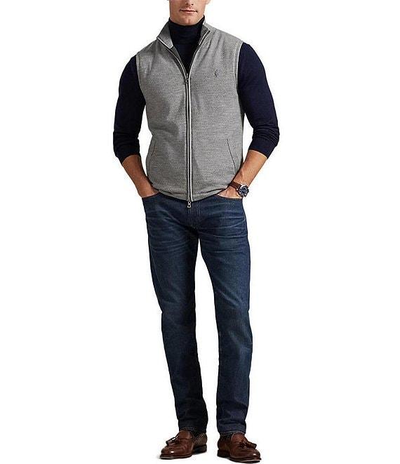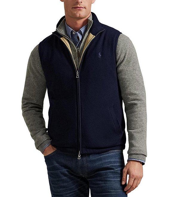 From Polo Ralph Lauren, this vest features: Rib-knit mock neck Two-way full-zip front Signature embroidered "Pony" on the left side of chest 2 front waist-angled pockets on each side Fully filled Primary shell: polyester/wool Reverse shell and fill: polyester Ribbed trim: polyester/wool/nylon/elastane Hand wash or dry clean Imported.