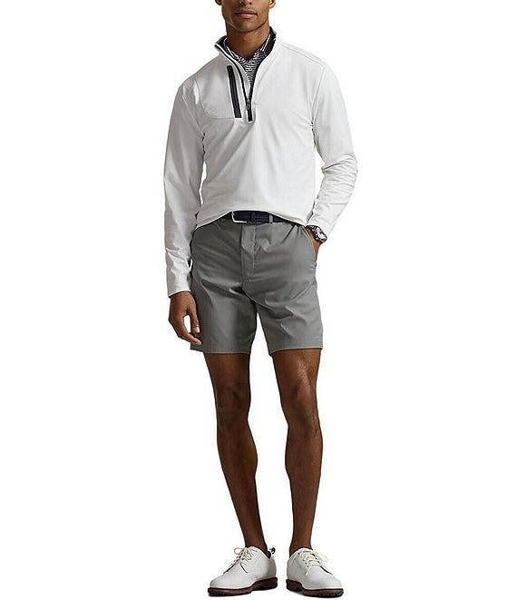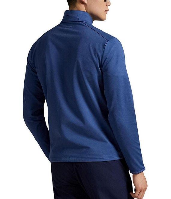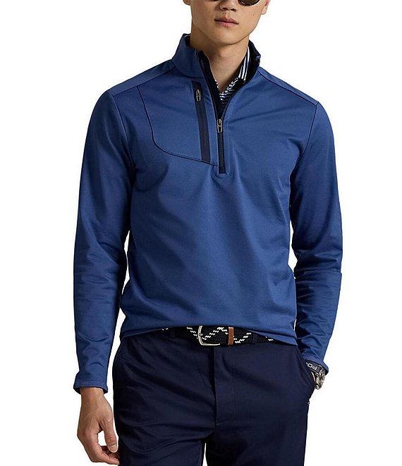From Polo Ralph Lauren, this pullover features: Quarter-zip mock neck Long sleeves with elastic binding at the cuffs Quarter-zip placket with a flap at the top that prevents chafing Right side chest zipped pocket "RLX" logo printed on the center back of the neck Pullover construction Stretch jersey fabric Polyester/elastane Machine wash/tumble dry Imported.
