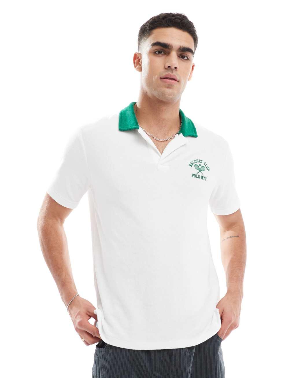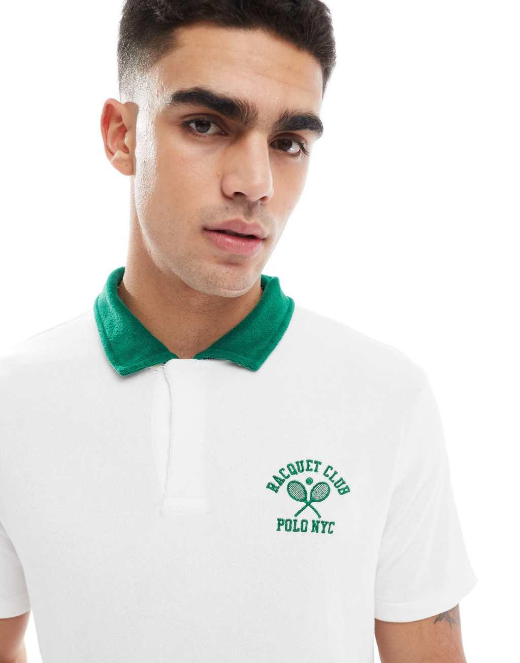 Polo Ralph Lauren run club P-wing logo cotton terry polo in white