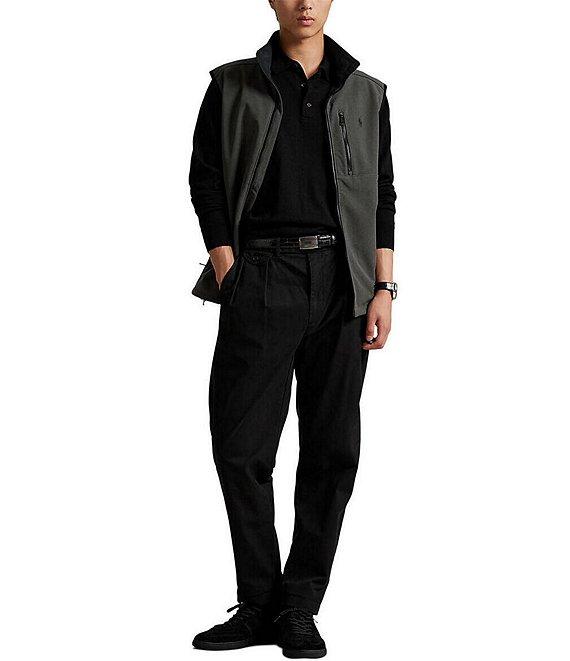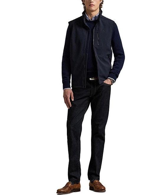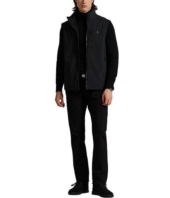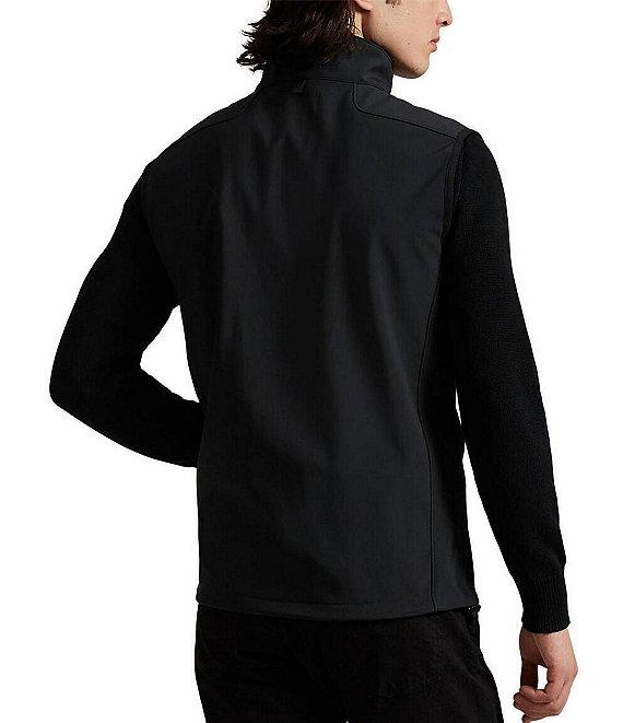 From Polo Ralph Lauren, this vest features: Solid Standard fit Mock neck collar Sleeveless Zip-front closure Zipped pocket on the left side of chest Signature "Pony" embroidered on the left side of chest Dual front waist zipped pockets Interior drawstring hem Front body lined with mesh Shell: polyester/elastane Interior: polyester Body lining: polyester Machine wash/tumble dry Imported.