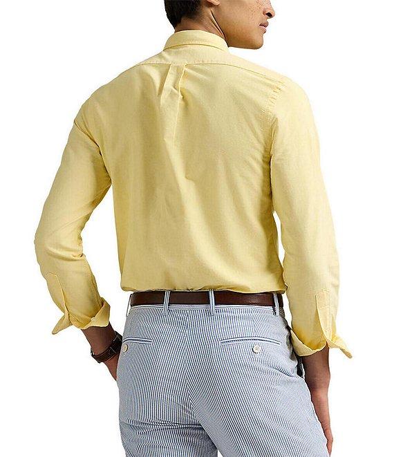 From Polo Ralph Lauren, this shirt features: Custom fit Button-down collar Long sleeves with buttoned barrel cuffs Button-front closure Multicolored signature embroidered "Pony" on the left side of chest Split back yoke with a box pleat ensures a comfortable fit and a greater range of motion Oxford cotton Machine wash/tumble dry Imported.