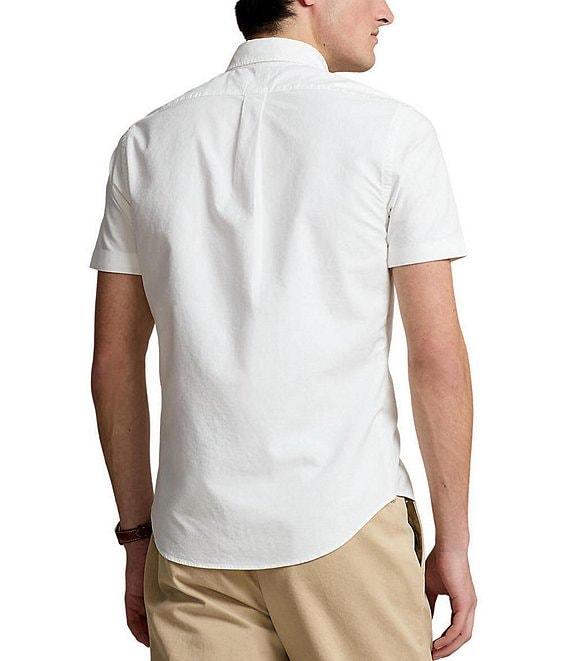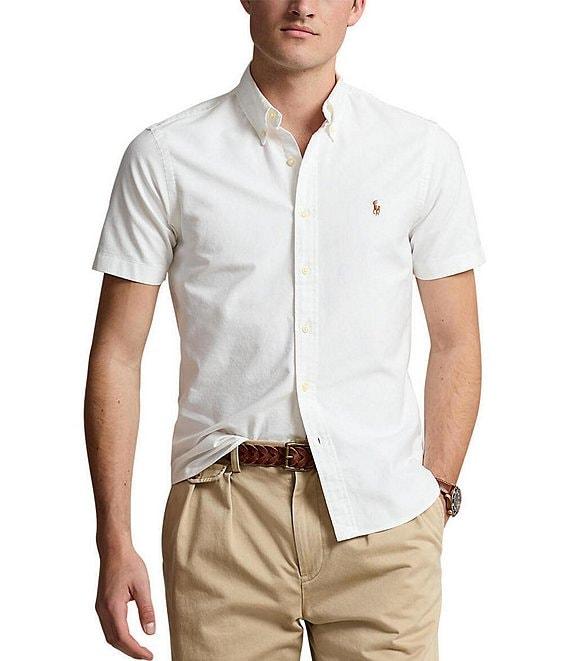 From Polo Ralph Lauren, this shirt features: Button down point collar Applied buttoned placket Short sleeves Multicolored signature embroidered Pony on the left side of chest Split back yoke with a box pleat Cotton Machine wash/tumble dry Imported. *Also available in Boys' sizing