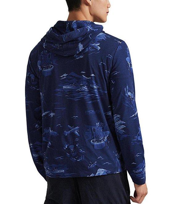 From Polo Ralph Lauren, this t-shirt features: Allover print Attached hood Long sleeves Embroidered "Pony" on the left side of chest Pullover construction Cotton Machine wash/tumble dry Imported.