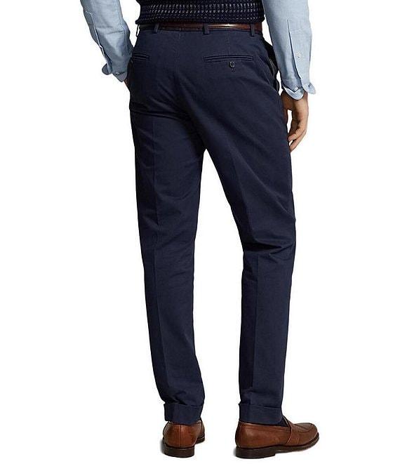 From Polo Ralph Lauren, these trouser pants feature:Belt loopsZippered fly with an extended hook-and-bar closure(2) x front-angled pockets(2) x back buttoned pocketsFlat front silhouetteUnlinedShell of cotton/elastane stretch chinoLining of cottonMachine washable or dry cleanImported.