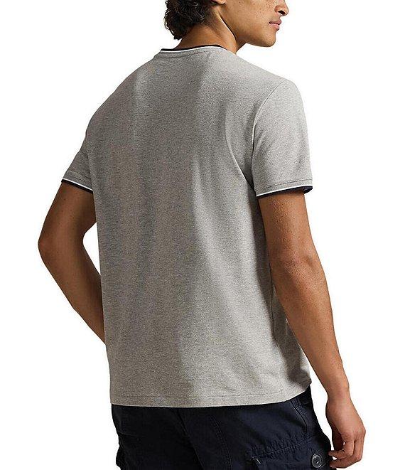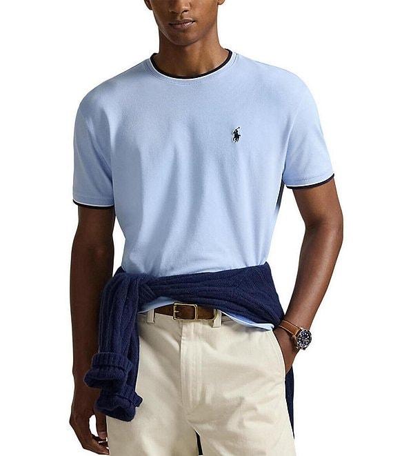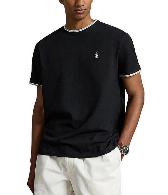 From Polo Ralph Lauren, this t-shirt features: Crew neckline with striped tipping Short sleeves Ribbed armbands with striped tipping Signature embroidered "Pony" on the left side of chest Pullover construction Stretch mesh fabric Cotton/elastane Machine wash/tumble dry Imported.