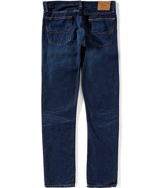 From Polo Ralph Lauren, these jeans feature: Sullivan slim fit Regular rise Trim fit through the seat and thigh Belt loops Zip fly with a buttoned closure 5-pocket jeans Metal button custom-developed with a “Polo Ralph Lauren” logo Metal rivets custom-developed with a “PRL 67” logo Foil-print “Polo Ralph Lauren” patch at the back right waist Cotton Machine wash/tumble dry Imported.
