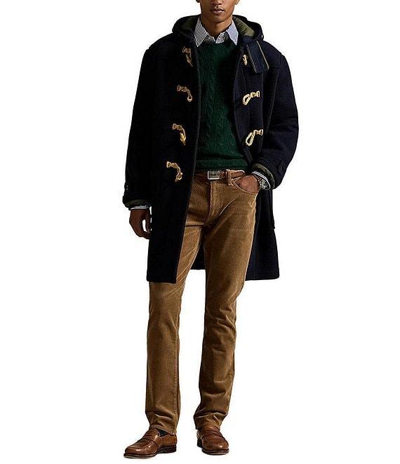 From Polo Ralph Lauren, these pants feature: Slim straight fit Low rise Belt loops Zip/button-front closure Signature embroidered Pony at the coin pocket Leather “Polo Ralph Lauren” patch at the back-right waist Five-pocket styling with signature metal rivets Fine-wale corduroy with a hint of stretch for added comfort Cotton/elastane Machine wash/tumble dry Imported.