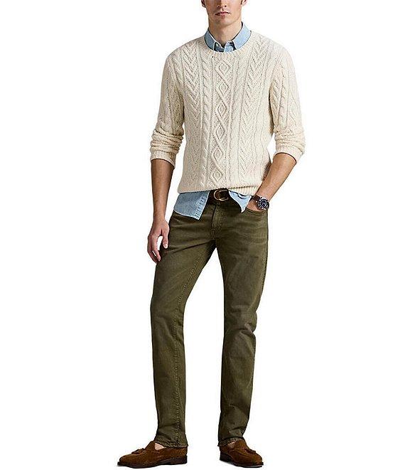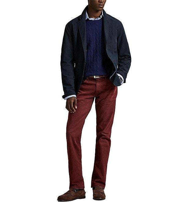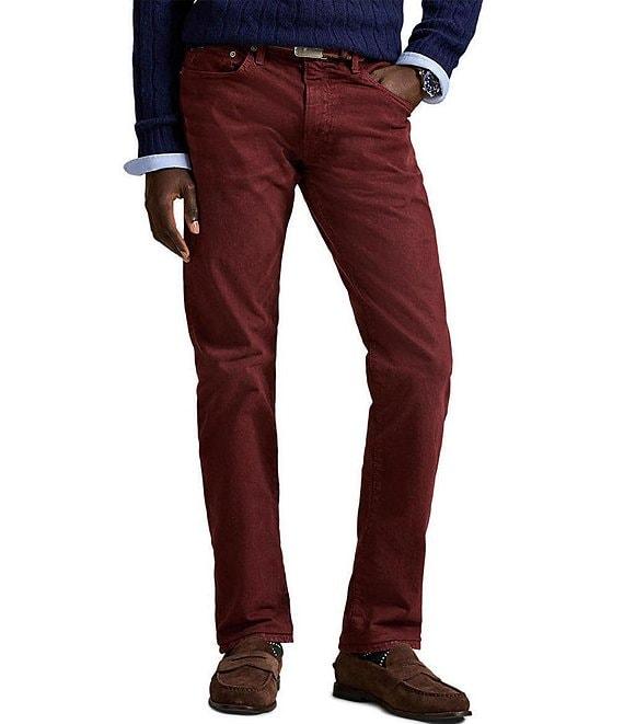 From Polo Ralph Lauren, these jeans feature: Mid/regular rise Belt loops Zip fly with signature buttoned closure 5-pocket jeans with signature metal rivets Varick slim straight Straight leg Trim fit through the thigh that relaxes from the knee down “Polo” label on the coin pocket Leather “Polo Ralph Lauren” patch on the back right waist Signature embroidered "Pony" on the back right pocket Stretch denim fabric Cotton/elastane Machine wash/tumble dry Imported.