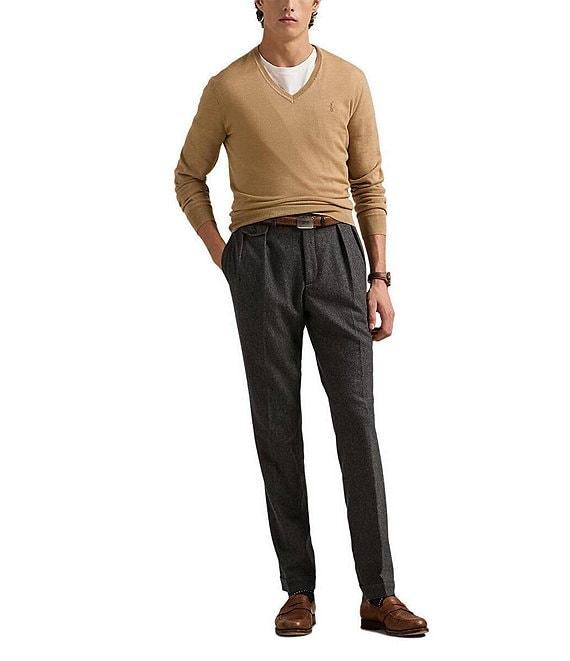 From Polo Ralph Lauren, this sweater features: V-neck Long sleeves with rib-knit cuffs Signature embroidered Pony on the left side of the chest Rib-knit hem Pullover construction Lightweight worsted wool yarn Machine wash Imported.