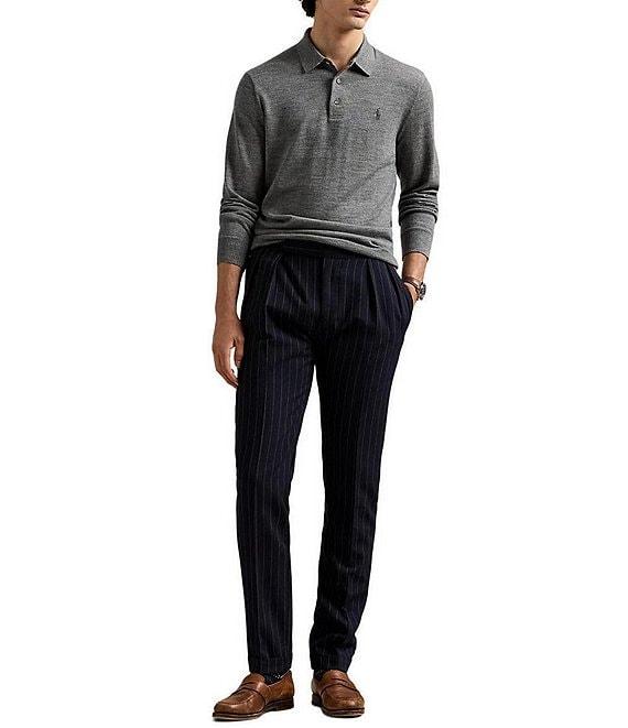From Polo Ralph Lauren, this polo sweater features: Polo collar Long sleeves with rib-knit cuffs 3-button placket Signature embroidered "Pony" on the left side of chest Regular fit Rib-knit hem Pullover construction Wool Machine wash/tumble dry Imported.