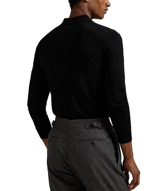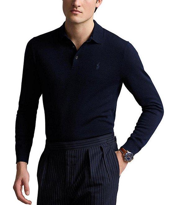 From Polo Ralph Lauren, this polo sweater features: Polo collar Long sleeves with rib-knit cuffs 3-button placket Signature embroidered "Pony" on the left side of chest Regular fit Rib-knit hem Pullover construction Wool Machine wash/tumble dry Imported.