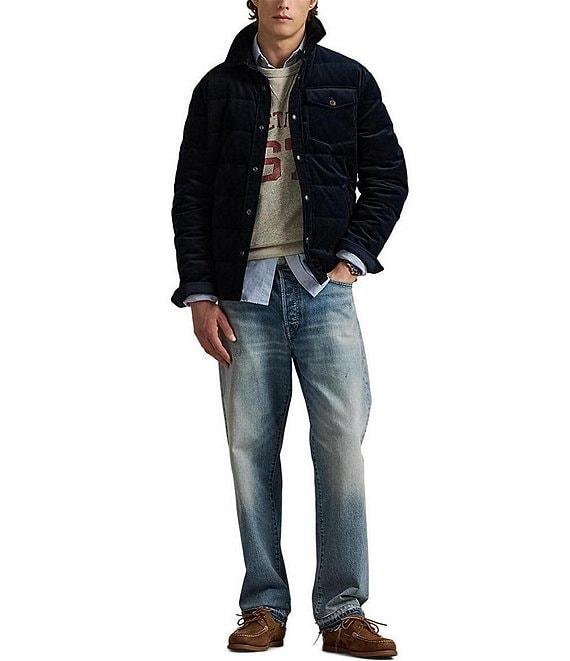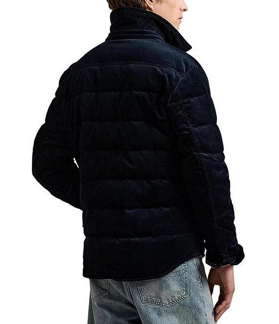 From Polo Ralph Lauren, this shacket features: All-over solid tone Shirt jacket silhouette Straight collar Button-front closure Long sleeves Elbow patches at sleeves Button pocket at left chest Dual angled pocket at front waist Fully lined and filled Leather "Polo Ralph Lauren" shield patch with signature "Pony" on left sleeve Shell: cotton Leather patch: leather Body lining: cotton/viscose/elastane Sleeve lining: viscose Fill: duck down/duck feathers Machine wash/tumble dry Imported.