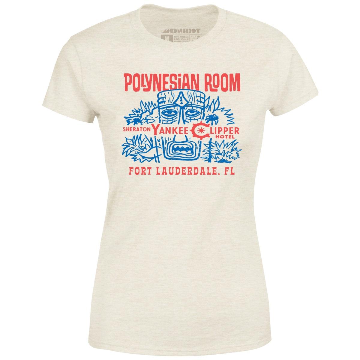The Polynesian Room, was located in Fort Lauderdale, Florida inside the Sheraton Yankee Clipper. It was a Tiki themed 300 seat show room that was the first to house a floor show in a Florida Hotel. This Tiki design is part of our retro collection. Inspired by the iconic vintage Polynesian themed Tiki Bars and Restaurants of yesteryear. Printed on our super soft 100% airlume ring-spun & combed cotton women's T-Shirt. Or upgrade to our Luxury 52/48 cotton/poly vintage heather edition for an even softer classic look. We print & ship all of our high quality graphic tees in the USA.