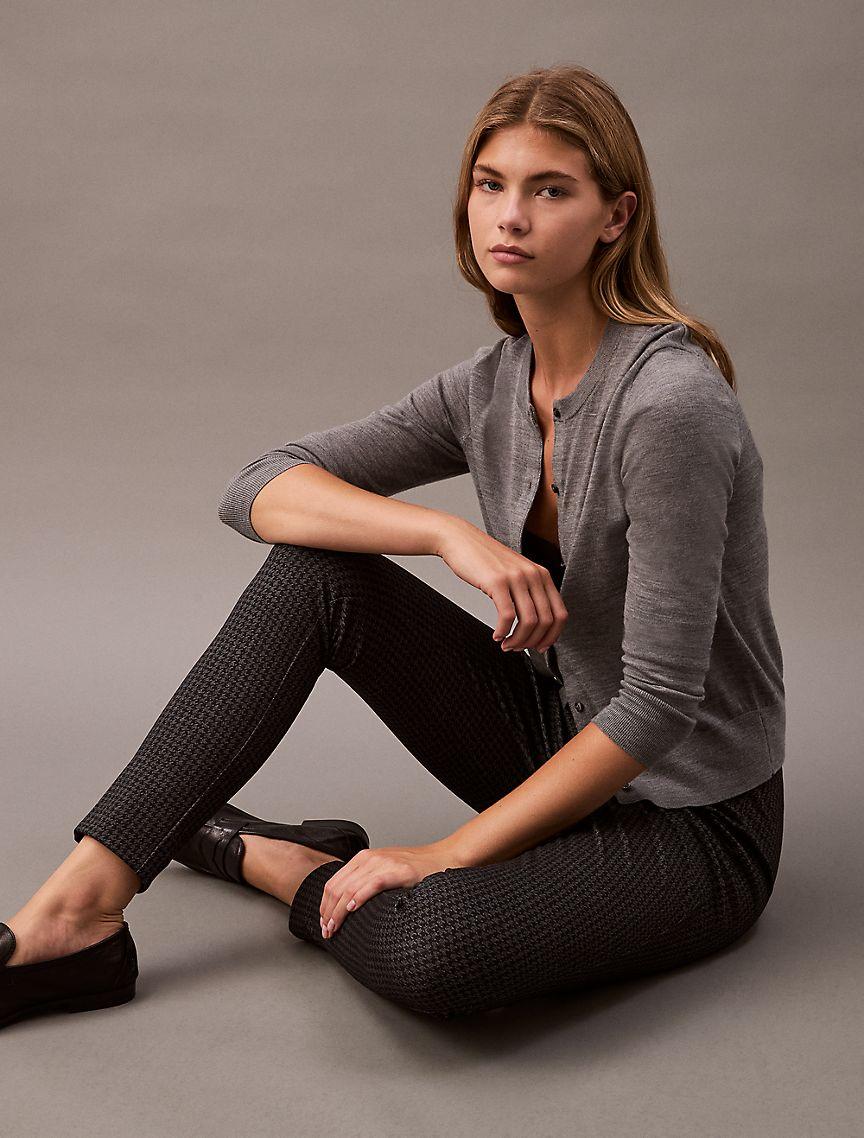 Designed in a skinny fit, these pants are crafted with stretch for a comfortable fit. Designed with a high rise waist and a sophisticated, timeless houndstooth print.