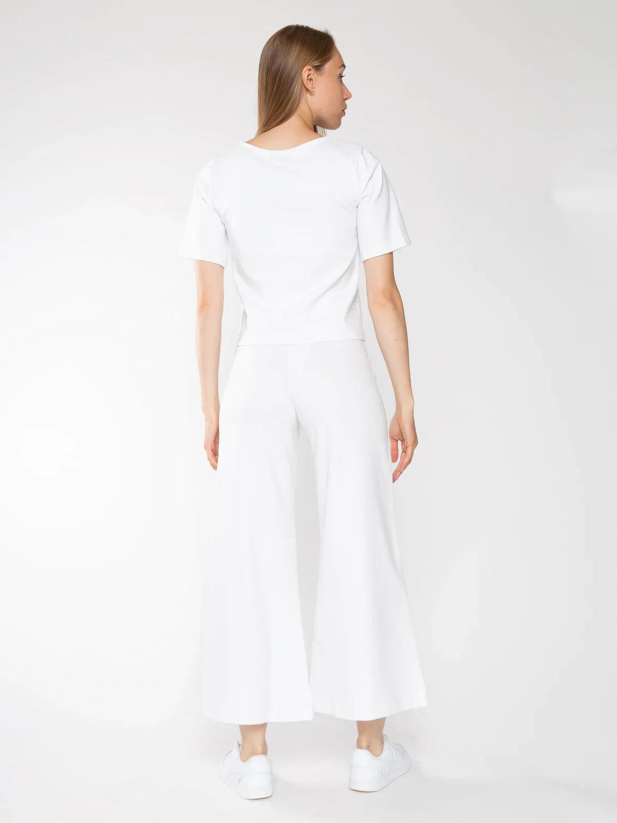 wide leg pant made from ponte knit.