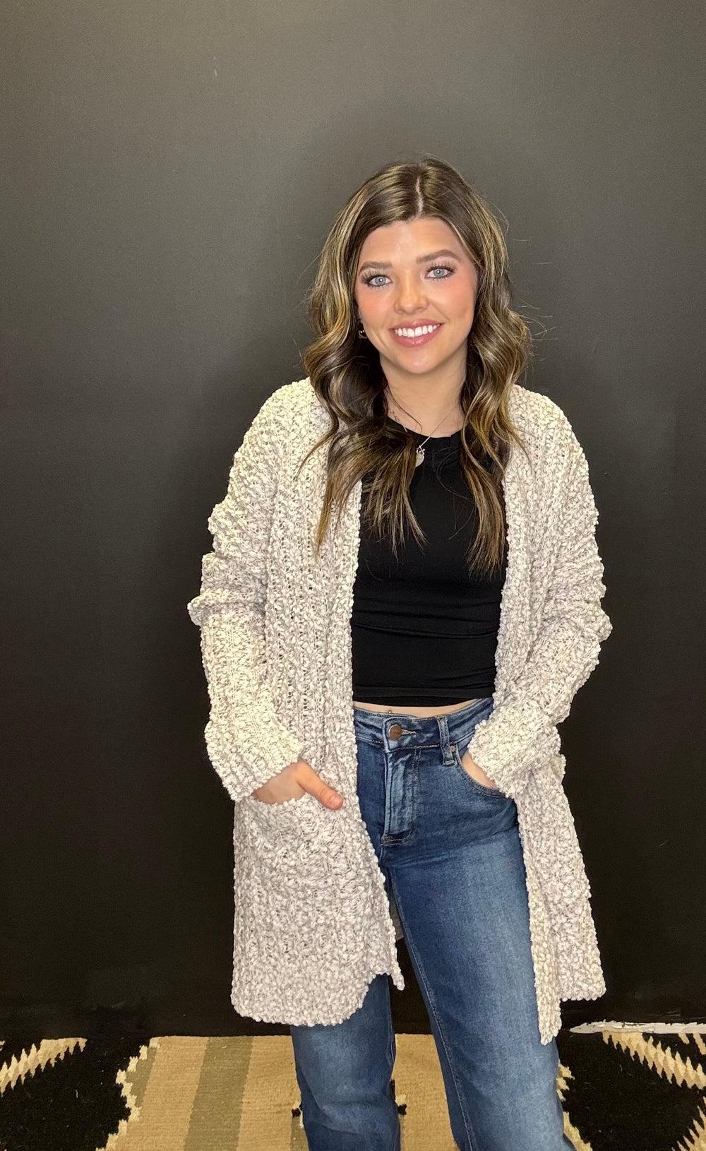 Grey Popcorn Pocket Cardigan