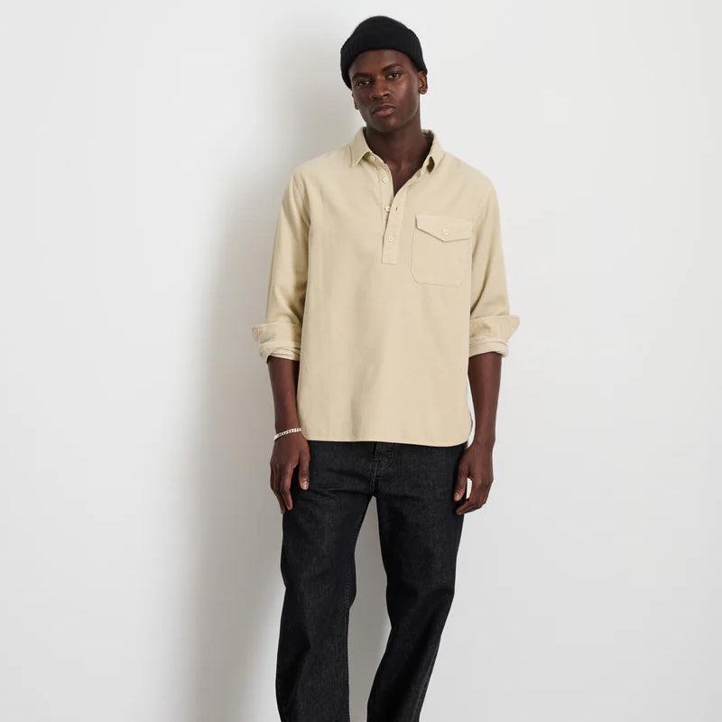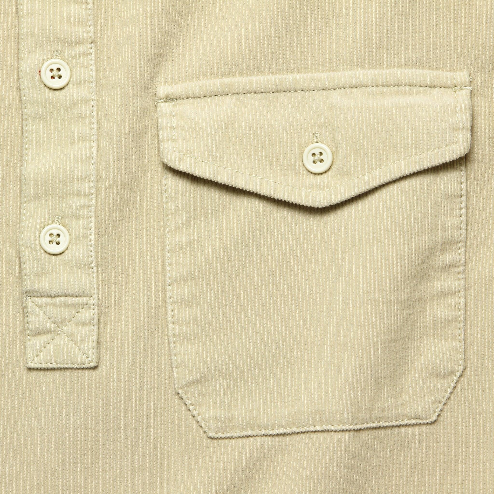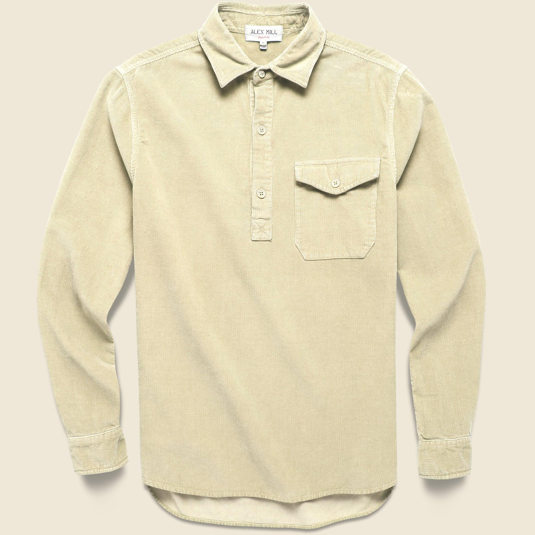 This Popover Cord Shirt from Alex Mill is made from lightweight, fine wale cotton corduroy that’s been garment dyed and washed for year-round comfort. The classic off-white will pair well with any pair of jeans or chinos in your closet and the comfortable fit feels great on its own or layered over your favorite shirt. It’s finished with a single chest pocket, classic popover placket, and a spread collar to top it off. Soft fine wale cotton corduroy Garment-dyed and washed for extra comfort Classic popover silhouette Single chest buttoned pocket Spread collar Traditional fit that runs true to size We recommend taking your normal size or taking one size up for a more relaxed fit Materials: 100% cotton The following measurements are for size Medium: Chest: 46“ | Shoulder: 16 ½“ | Sleeve: 33 ½“ | Length: 30“