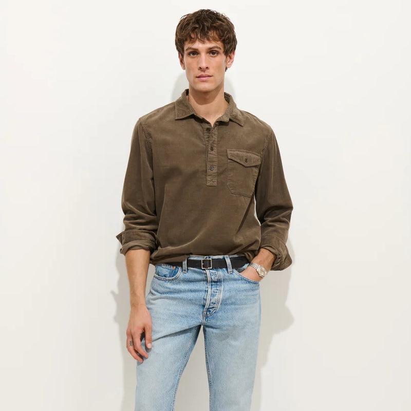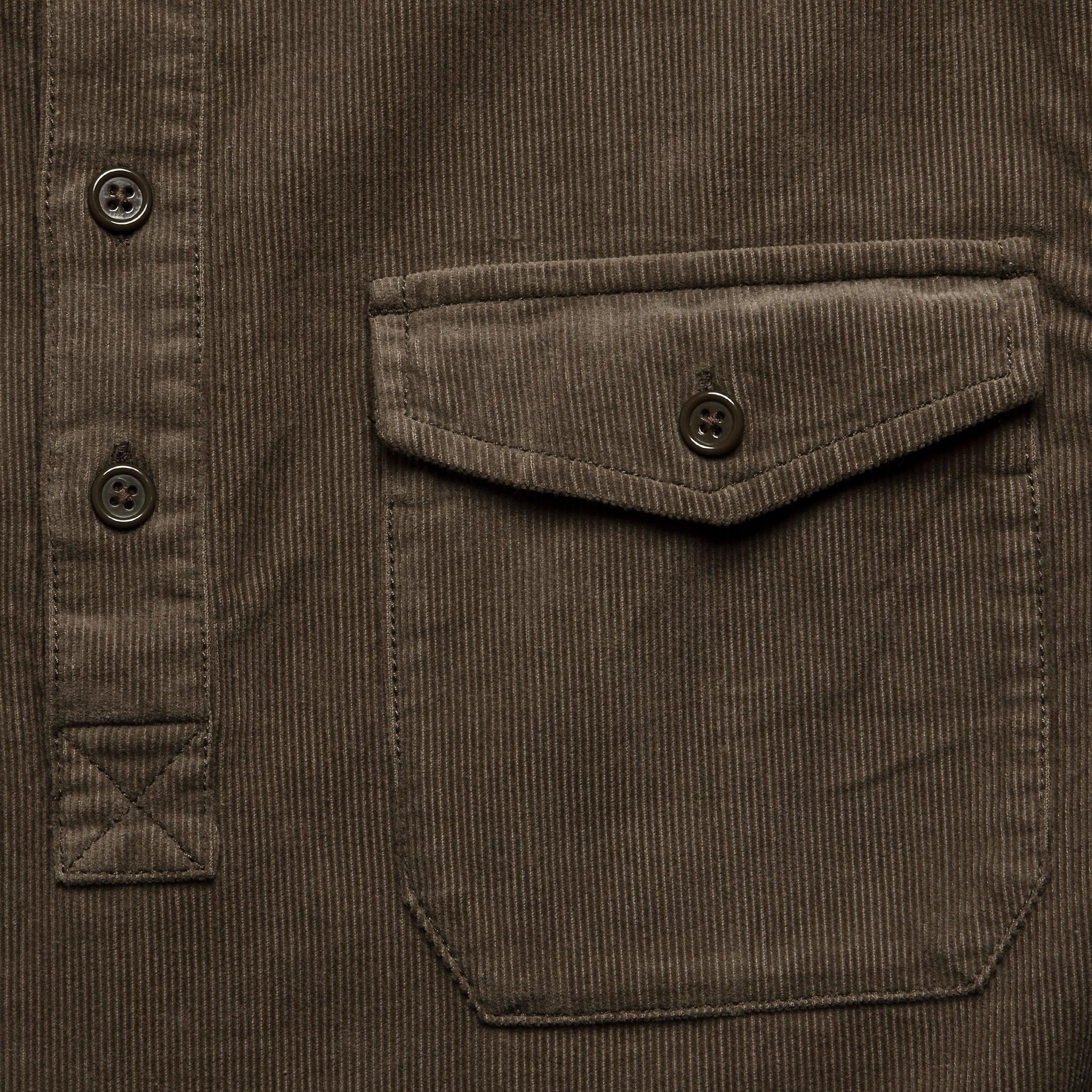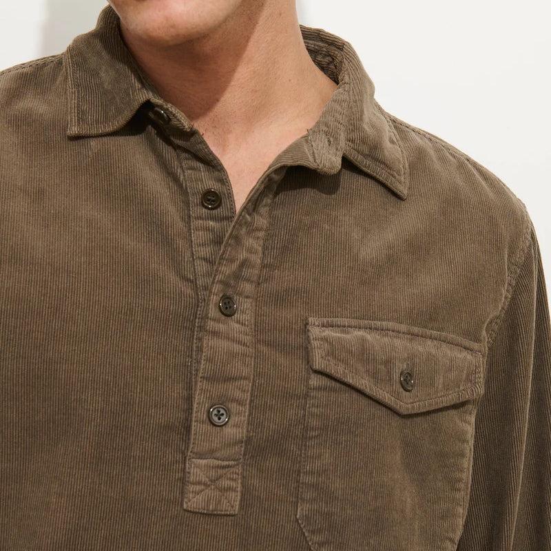 This Popover Cord Shirt from Alex Mill is made from lightweight, fine wale cotton corduroy that’s been garment dyed and washed for year-round comfort. The classic brown umber will pair well with any pair of jeans or chinos in your closet and the comfortable fit feels great on its own or layered over your favorite shirt. It’s finished with a single chest pocket, a classic popover placket, and a spread collar to top it off. Soft fine wale cotton corduroy Garment-dyed and washed for extra comfort Classic popover silhouette Single chest buttoned pocket Spread collar Relaxed fit that runs true to size We recommend taking your normal size Materials: 100% cotton The following measurements are for size Medium: Chest: 44“ | Shoulder: 17 ½“ | Sleeve: 33“ | Length: 30“