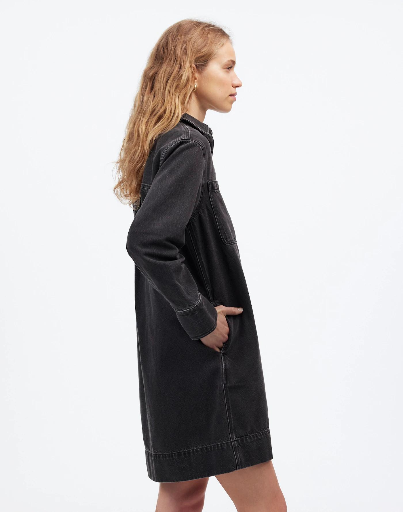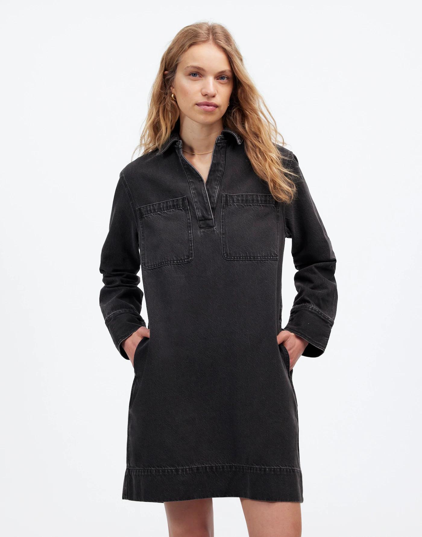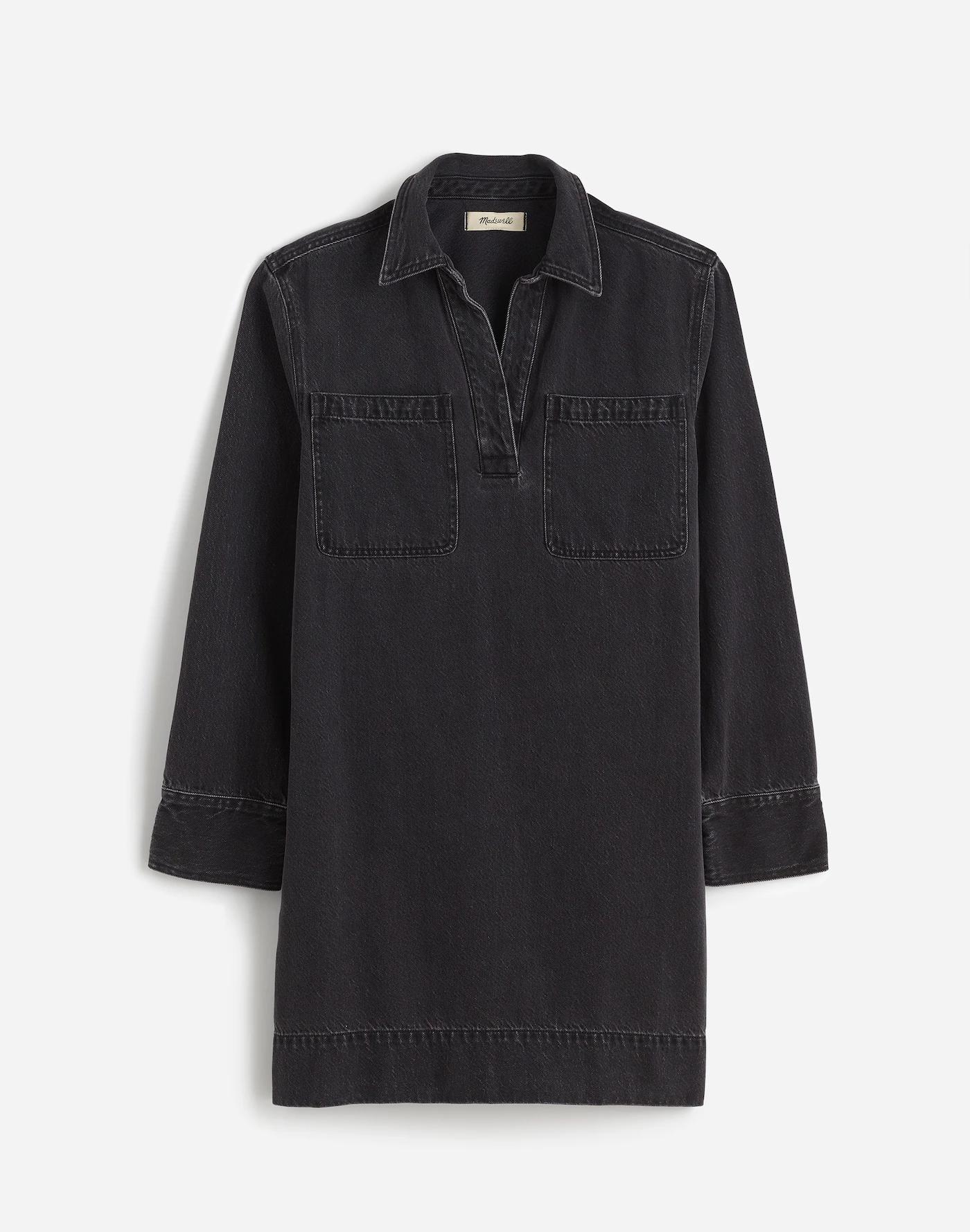 Crafted from our signature Airy Denim, this popover mini dress is your next wardrobe essential. Effortlessly cool, it features a relaxed fit, rounded chest patch pockets and wide long sleeves.