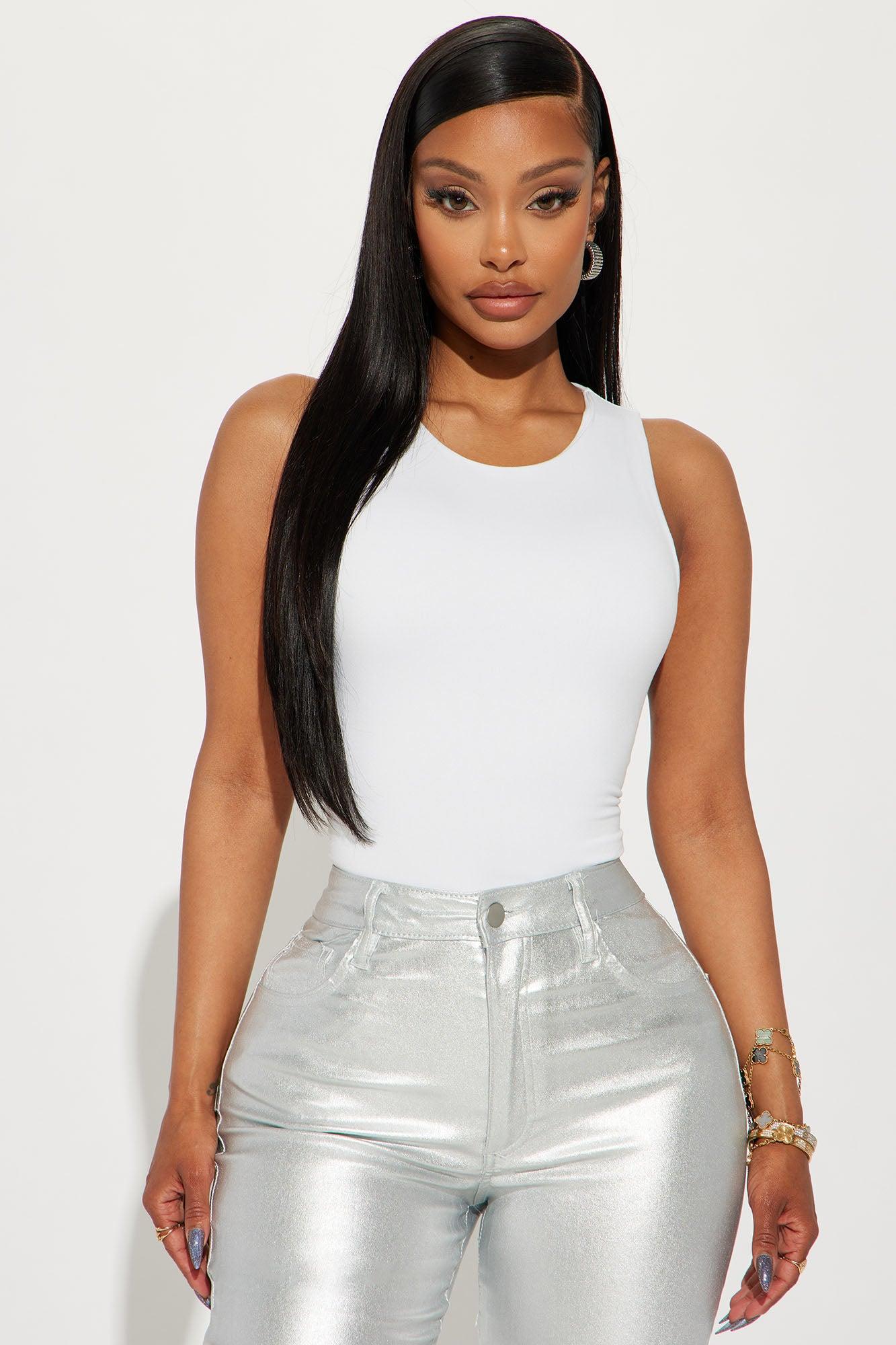 Available In Black, Heather Grey, Hunter, Hunter Green, Olive, Taupe And White. Bodysuit Sleeveless Crew Neck Snap Button Closure Cheeky Bottom Double Layered Final Sale 95% Polyester 5% Spandex Imported California Proposition 65WARNING: Cancer and Reproductive Harm - www.P65Warnings.ca.gov.